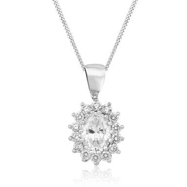 6mm x 4mm Oval Claw Set Centre Stone with CZ surround and a fixed bale. Matching Ring and Earrings Available CL3156 / CL8156