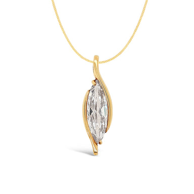 21mm x 7mm Navette Single Stone set with a single claw and encased in a semi rub over setting. Matching Ring Available CL3025 Chain not supplied