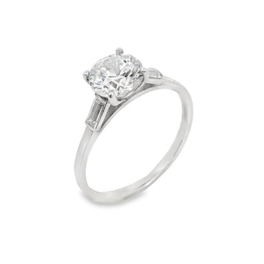 7mm round claw set CZ with 4x2mm straight baguette CZ shoulders