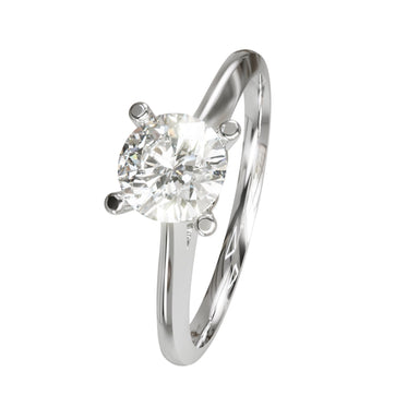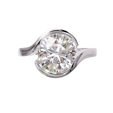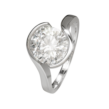 A sleek modern ring, featuring a single stone lab diamond ring features a brilliant round 1.25ct diamond semi rubover set in a twisted, polished ba...
