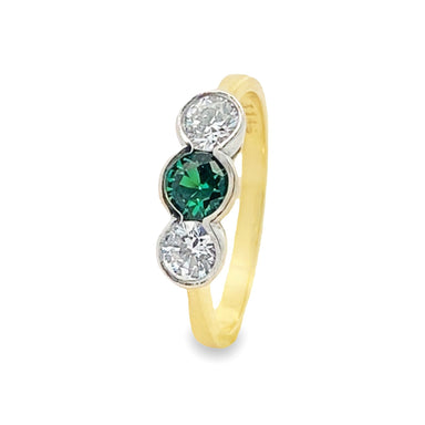 Three Stone Round Rub over ring Set With 4.75mm Centre with 4mm outers.