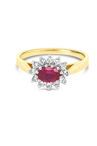 3.75mm centre stone surrounded by 2.3mm stones with a third surround of 2.5mm outers, All set in a tiered graduating setting with the highest being...