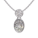 A sleek 2 stone pendant with an articulated bottom setting, allowing graceful movement. Featuring a round brilliant cut and oval cut diamond, with rubover settings.